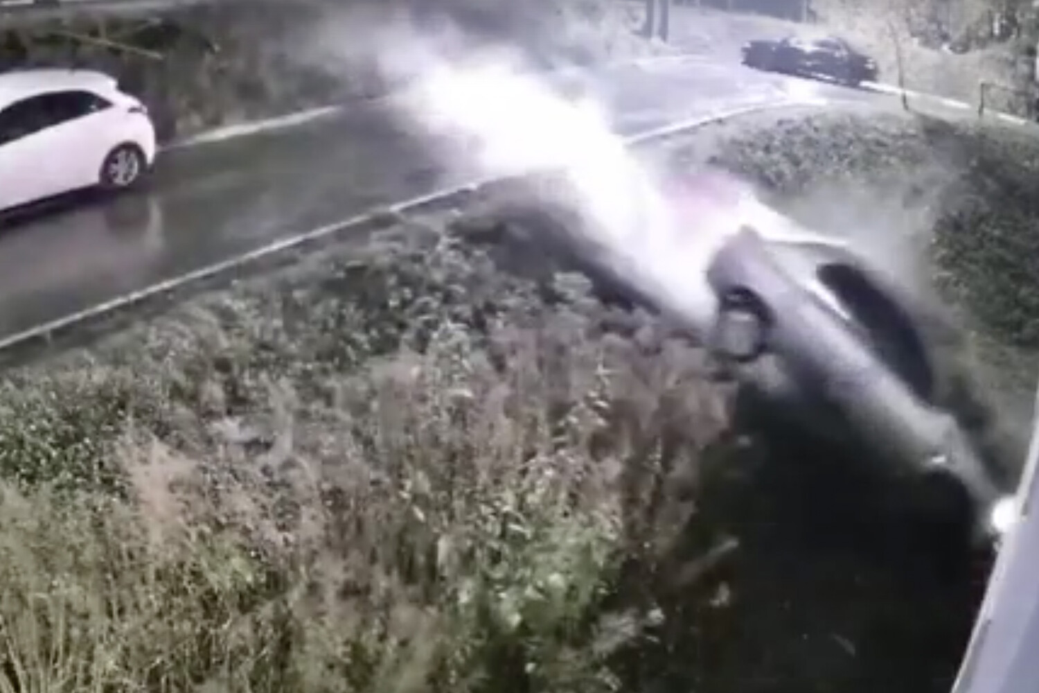На кадрах видно, как легковой автомобиль вылетает с дороги, перелетает проезжую часть и приземляется в кювет. Предварительно установлено, что в результате ДТП никто не пострадал. Водитель скрылся с места аварии.