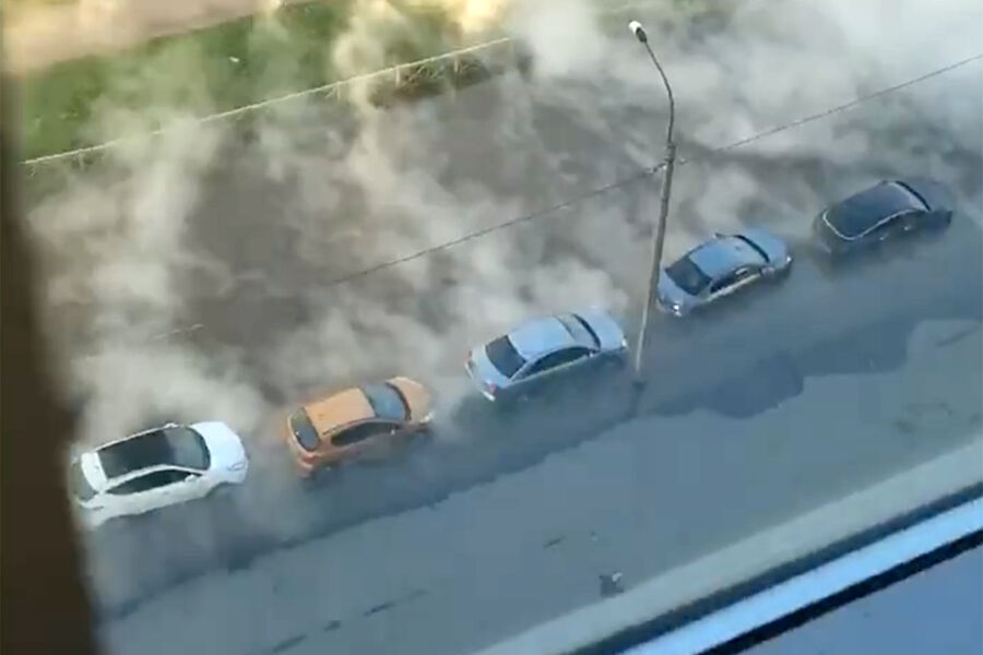 На улице образовалось плотное облако пара, машины оказались заблокированы в горячей воде. Пассажир одного из автомобилей едва не обварился, потому что не мог выбраться из машины. Спасатели эвакуировали его в безопасное место.