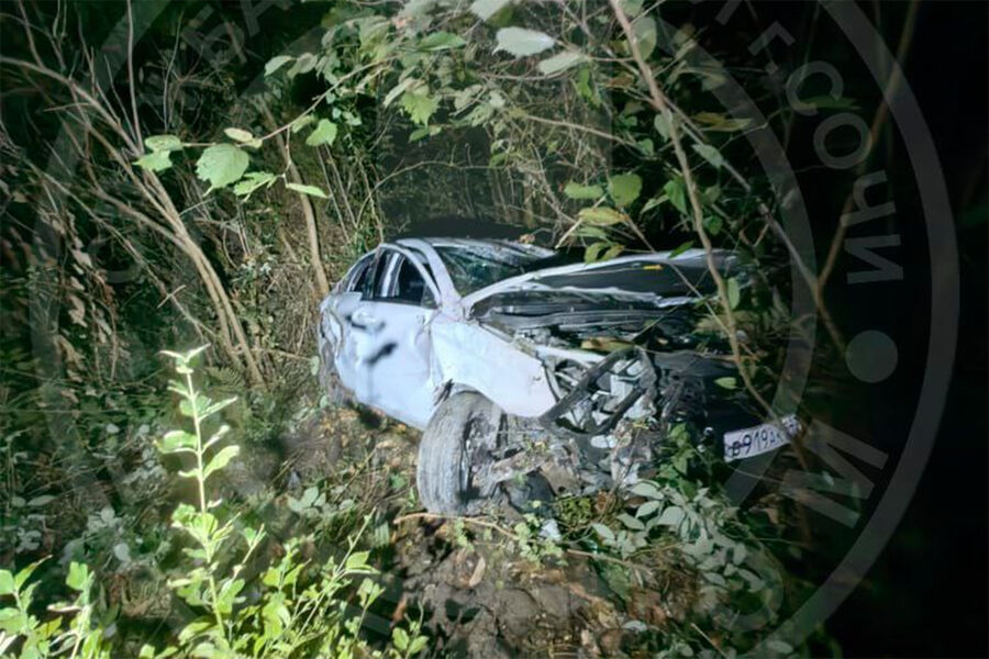 В Сочи автомобиль с четырьмя пассажирами свалился с 20-метрового обрыва