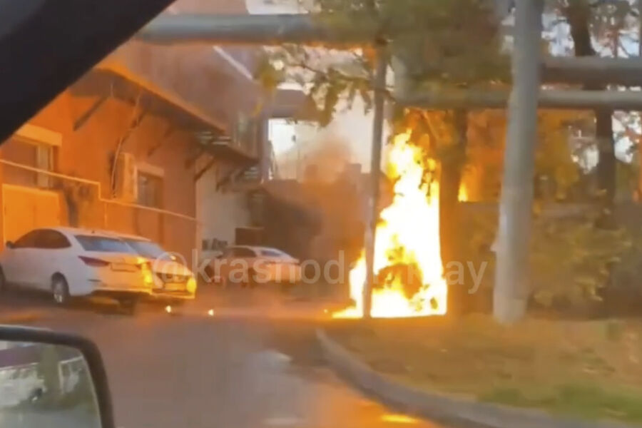 Сразу несколько стоящих машин охватил огонь в Краснодаре
