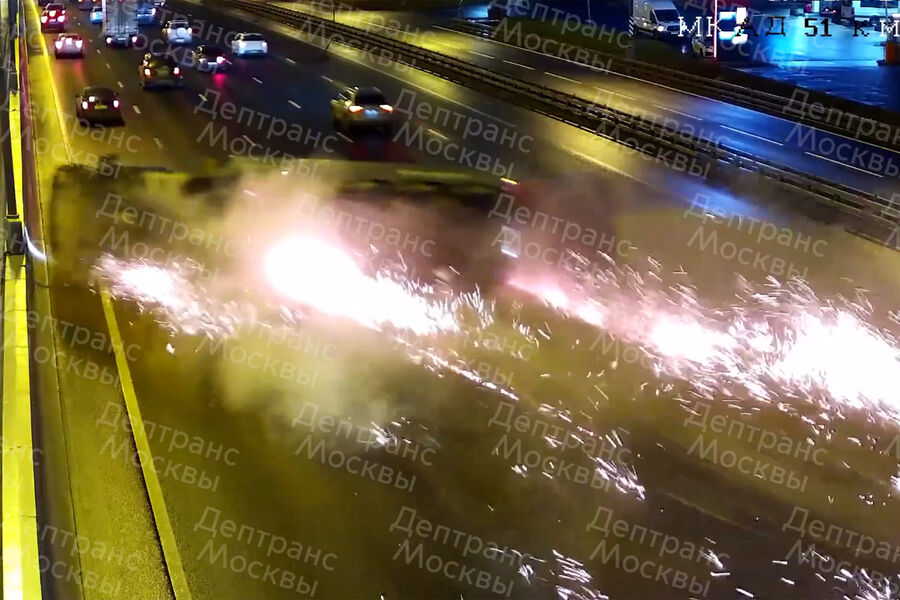Также Дептранс показал запись аварии с грузовиком и тремя легковушками на МКАД.