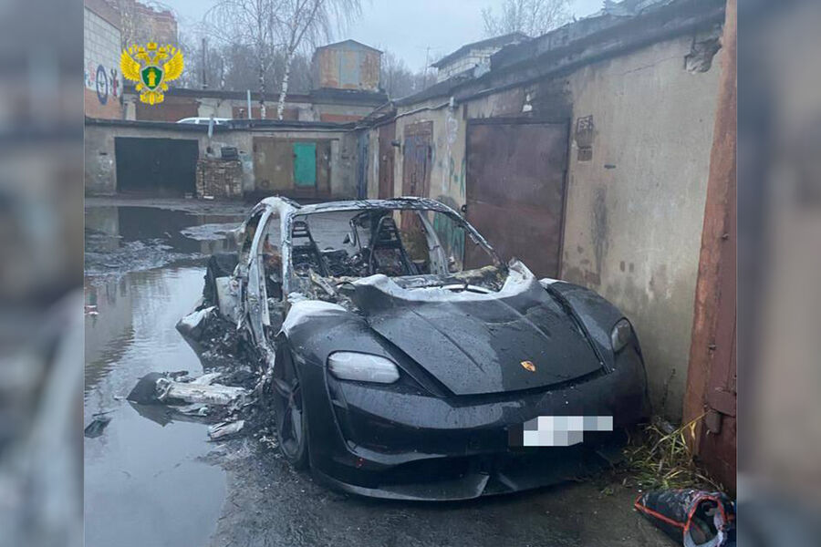 Прокуратура показала фото сгоревшего Porsche Taycan после угона в Новой Москве