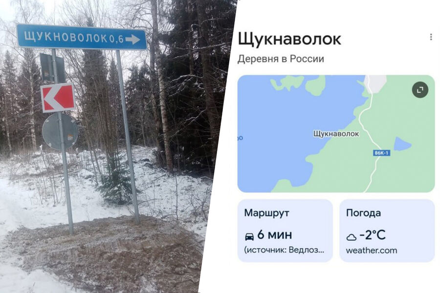 Деревня Щукнаволок располагается на берегу озера Ведлозеро. По словам местных жителей, которые опубликовали фотографии знака, в названии поселения дорожники перепутали А и О, установив табличку при капитальном ремонте дороги Видлица — Кинелахта — Ведлозеро. Получилось «Щукноволок». Возмущенные ситуацией уже направили обращение в Минтранс с просьбой исправить ошибку.