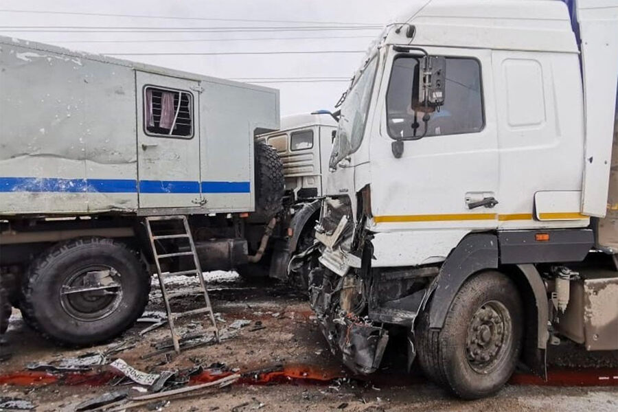 Авария произошла утром в городе Волжский. Служебный грузовик «КамАЗ», который закреплен за управлением МВД по городу, столкнулся с грузовым «МАЗом». В результате аварии травмы получили два сотрудника полиции и водитель фуры.