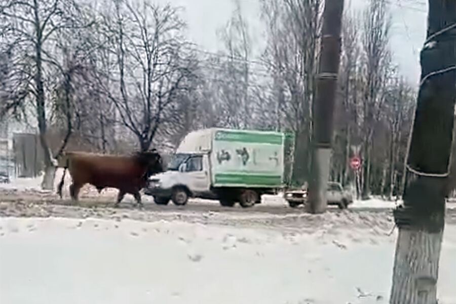 В Орле бык ушел от хозяина и оказался на оживленной улице, где бегал среди автомобилей. Видеозапись инцидента появилась в паблике «Город Орел» в соцсети «ВКонтакте».