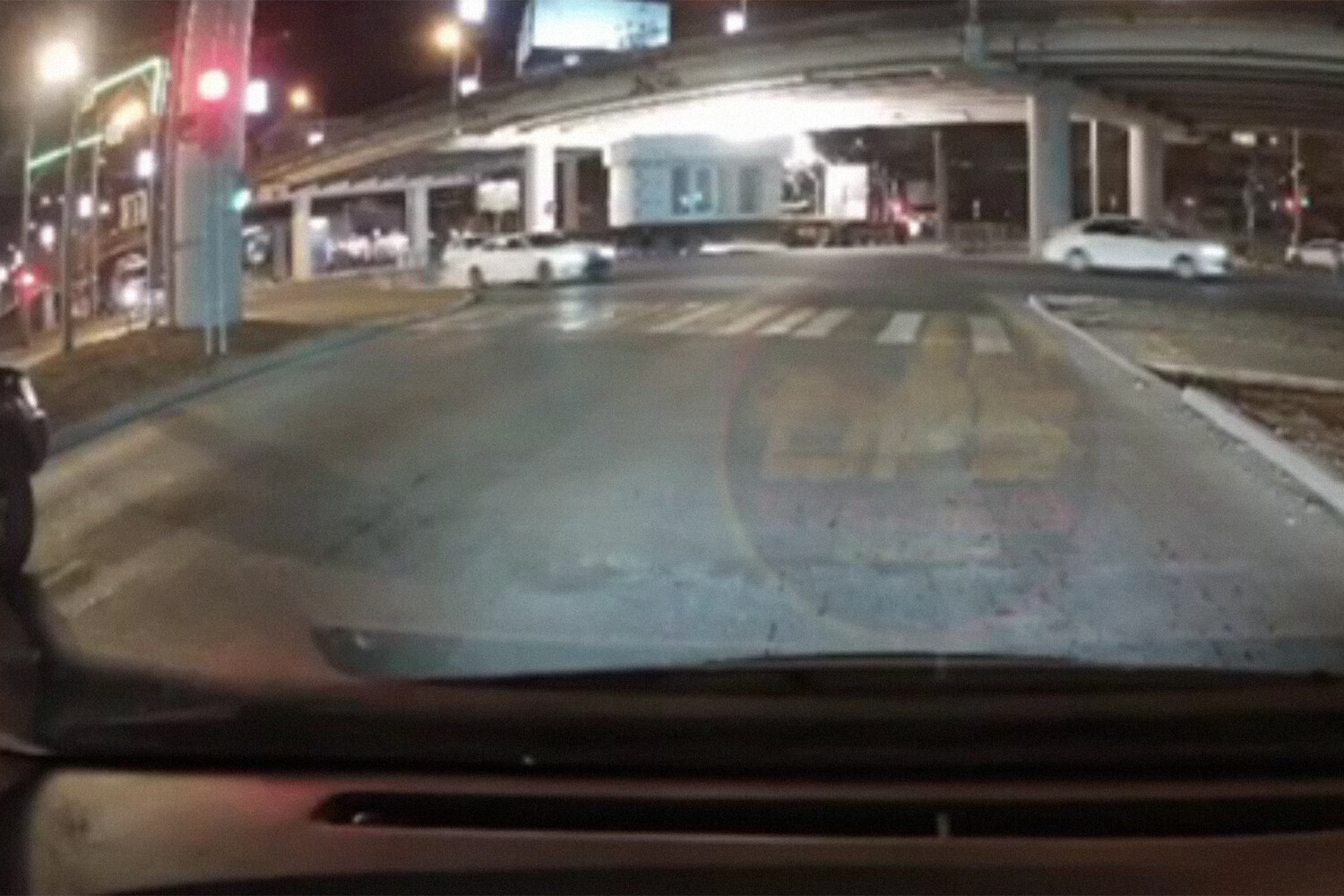 На кадрах с места происшествия видно, что большегрузный автомобиль с установленным на нем павильоном пытался проехать под путепроводом, но груз задел протянутые под ним провода. Произошло замыкание, возникла яркая вспышка от электрической дуги. О пострадавших не сообщается.
