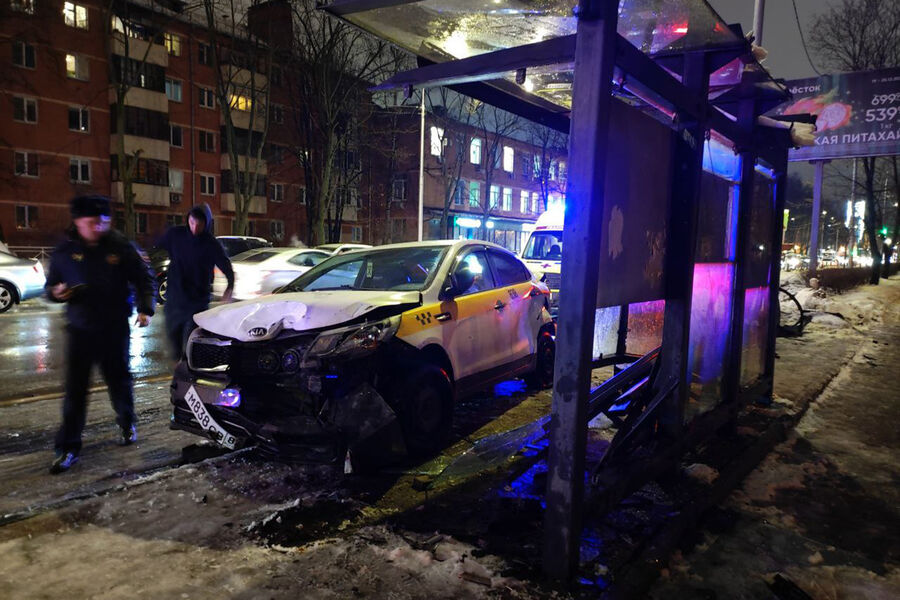 Авария произошла на пересечении Новомытищинского проспекта и улицы Терешковой. На кадрах с места аварии видно, что автомобиль BMW после столкновения с такси Kia врезался в столб на тротуаре, а такси Kia отбросило на автобусную остановку.