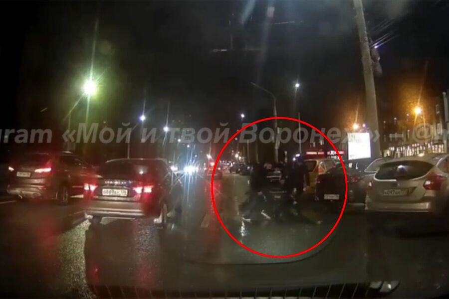 В Воронеже несколько мужчин ногами и дубинкой избили человека на дороге