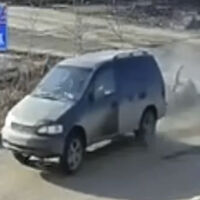 На видео показано, как минивэн на большой скорости подлетает на горке, в результате чего из машины выпадают два пассажира. К ним подбегают прохожие. Спустя недолгое время водитель возвращается за пассажирами и заодно сбивает рядом стоящего пешехода. Затем мужчина, находившийся за рулем, выходит из автомобиля и получает удар от другого новосибирца.