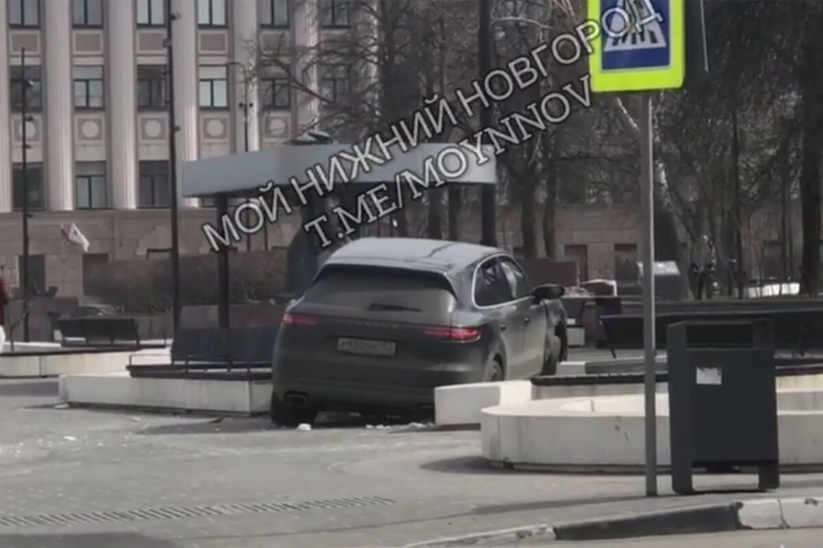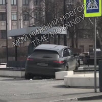 Porsche на полной скорости влетел на тротуар с пешеходами в Нижнем Новгороде