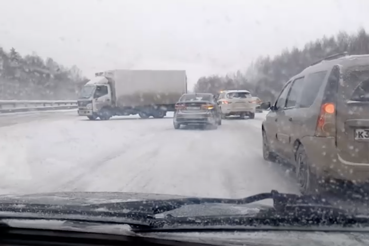 По данным ведомства, на некоторых участках трассы заметены снегом высотой более 10 сантиметров. В связи с понижением температур на дорогах образовалась гололедица и снежный покров.