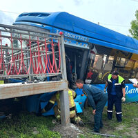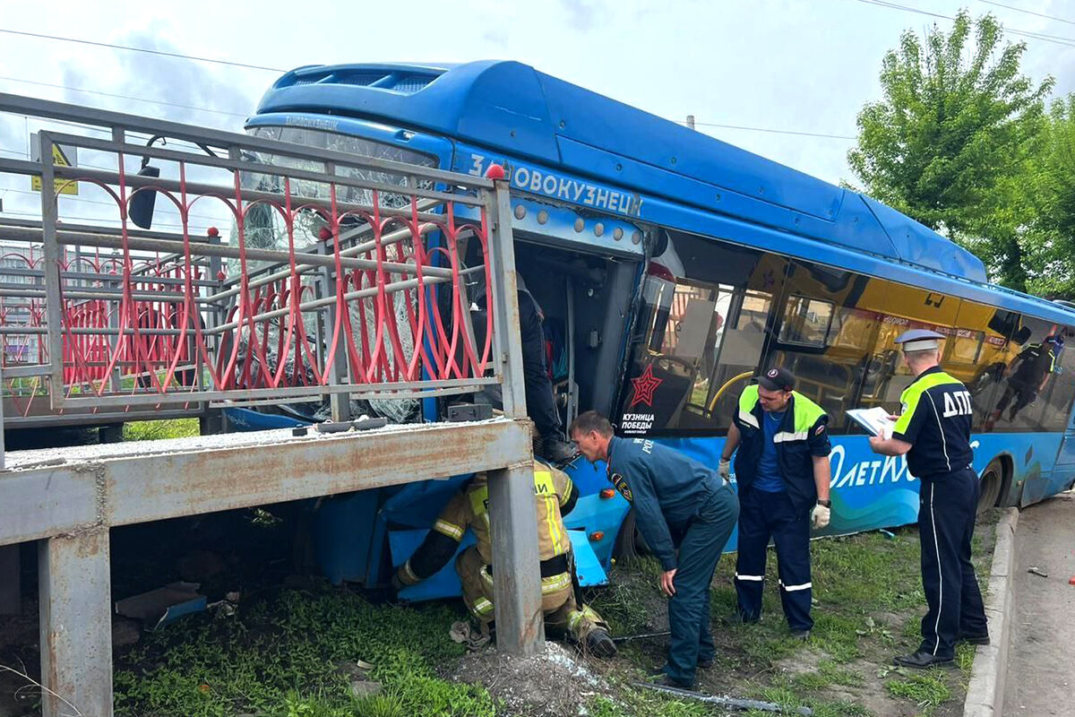 В Новокузнецке автобус с пассажирами врезался в ограждение железной дороги