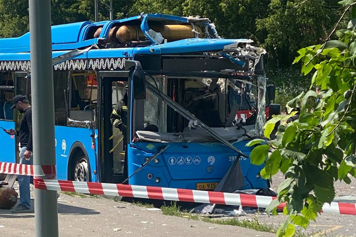 Москвичка рассказала, что у водителя автобуса пострадали глаза после взрыва газового баллона на крыше