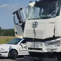 8 июля в Ленинградской области на трассе М-10, в направлении Санкт-Петербурга, столкнулись два грузовика.