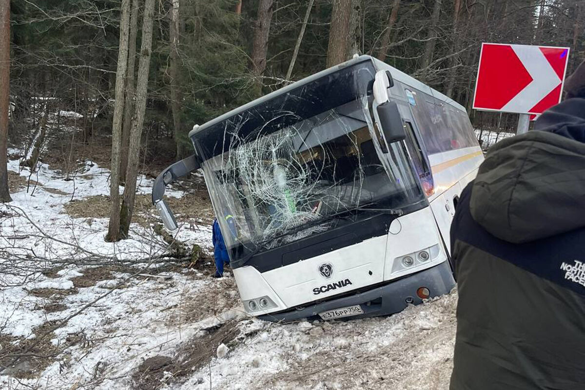 В Орехово-Зуево автобус вылетел с трассы, шесть человек пострадали
