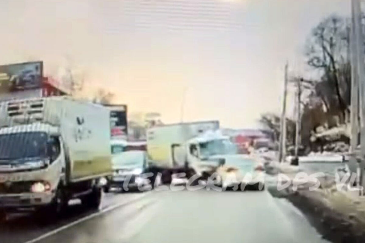 Во Владивостоке попал на видео таран грузовика и легкового автомобиля