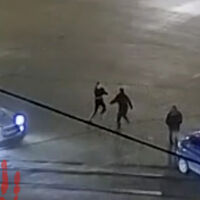 Уличные камеры запечатлели инцидент. На кадрах видно, как на перекрестке останавливаются два автомобиля, из которых выходят люди и начинают драться. Затем к конфликтующим подбегают очевидцы, чтобы их разнять. После все уезжают. На кадрах также видно, что во время драки возле конфликтующих ездят машины, автобусы и трамваи.
