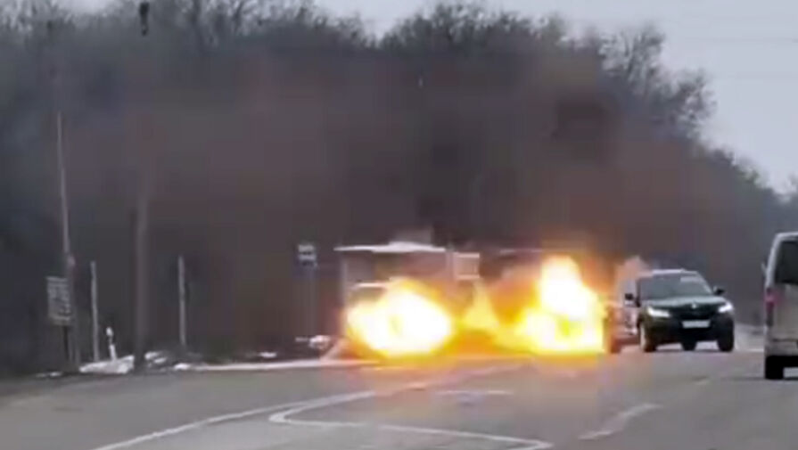На кадрах видно, что квадрокоптер приближается сзади к белой «Ниве» и темному кроссоверу, едущим по трассе. За ними у автобусной остановки припаркован «КамАЗ» с кабиной цвета хаки. Беспилотник врезался в проезжую часть между двумя легковыми машинами и взорвался. Прямо перед взрывом водитель темного кроссовера резко повернул влево и ускорился, чтобы не попасть под удар.