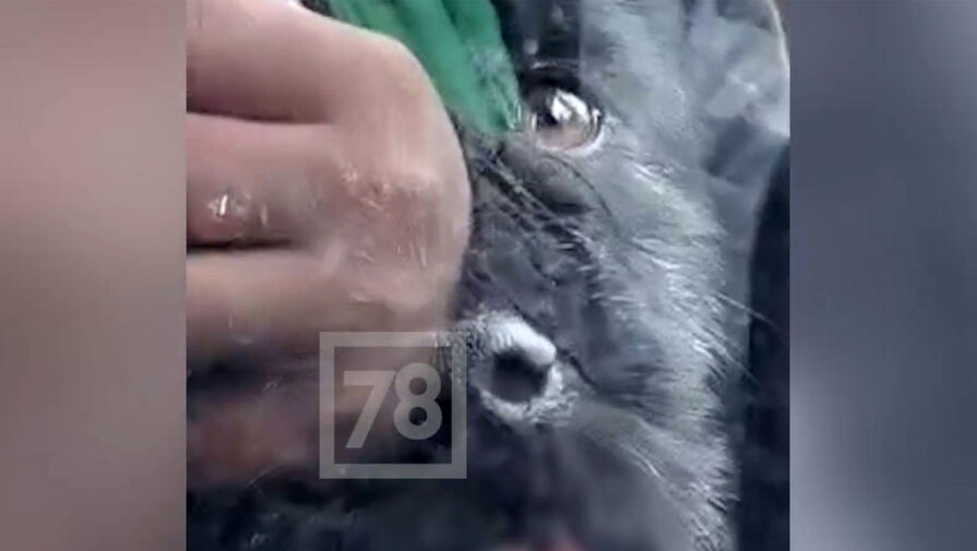 Очевидцы запечатлели инцидент на камеру. На кадрах видно, что черная собака сидит в автомобиле на переднем сиденье. У животного на нижней челюсти рана.