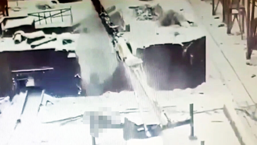 Инцидент запечатлела уличная камера. На кадрах видно, как кран опускается, и сверху падает рабочая платформа с человеком.