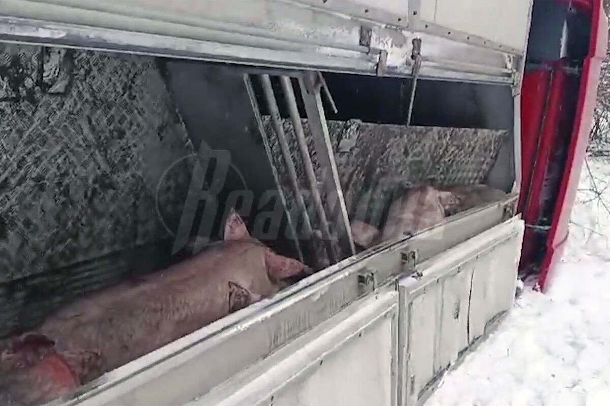 На кадрах, снятых очевидцем, видно, что свиньи сидят в перевернутой фуре. При этом некоторые из них покинули место аварии и ушли на обочину. На записи также слышно, что животные издают громкие звуки.
