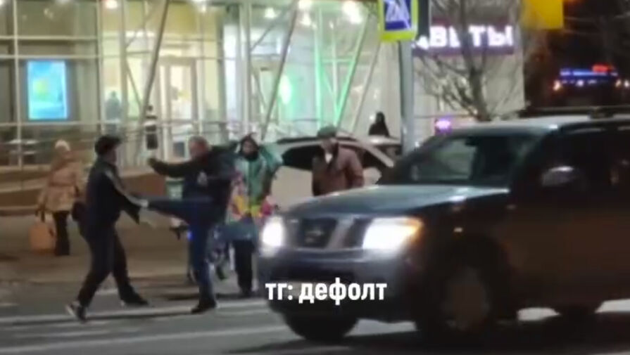 Очевидцы запечатлели инцидент на камеру. На кадрах видно, как мужчины конфликтуют на пешеходном переходе. Каждый замахивается руками, но не ударяет своего оппонента, при этом один из мужчин подходит к автомобилю такси и пинает машину.