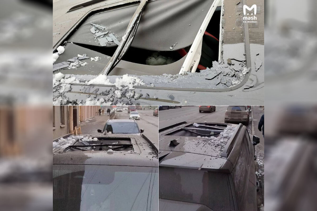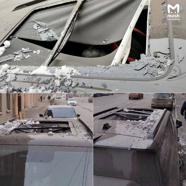 «Беспощадная питерская оттепель, традиционно несущая опасность, испортила утро жителю Васьки — упавшая с крыши дома наледь пробила панорамную крышу авто и вместе с осколками залетела в салон», — говорится в сообщении канала.