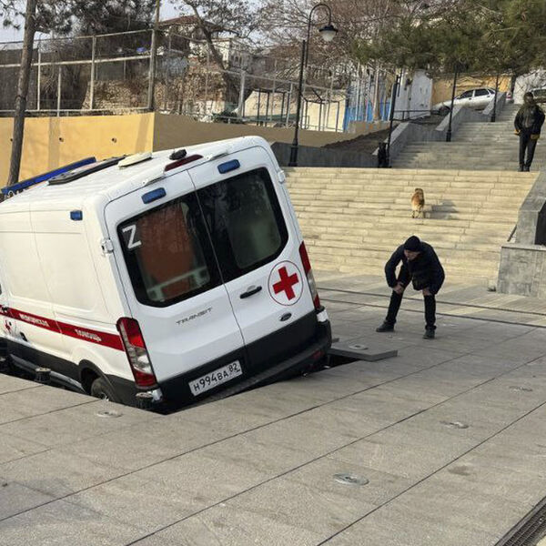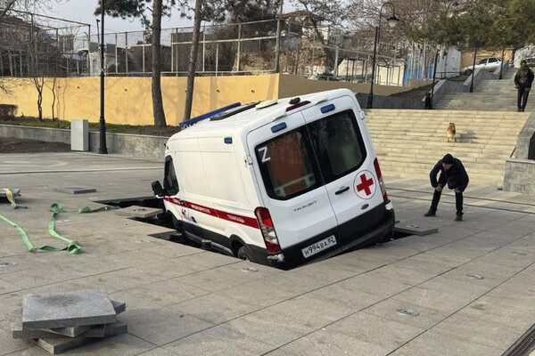 В Феодосии автомобиль скорой помощи разрушил фонтан и провалился под землю