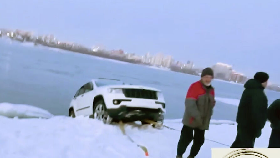 В Оби выловили вмерзший в лед внедорожник Jeep