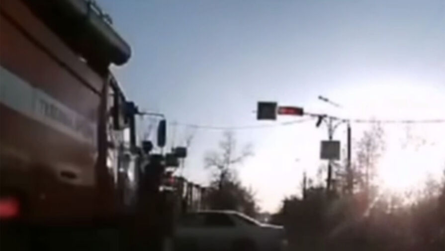 На видео попал момент ДТП в Хакасии, где девушка вылетела под пожарную машину