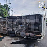 Авария произошла в районе пляжей Камала и Патонг. Судя по видео с места события, автобус ехал на большой скорости и не вписался в поворот. По словам очевидцев, у транспорта могли отказать тормоза.