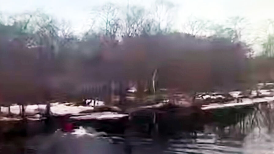 Видеорегистратор патрульного автомобиля запечатлел инцидент. На кадрах видно, как два человека оставляют свой мопед, подбегают к водоему и переплывают его.