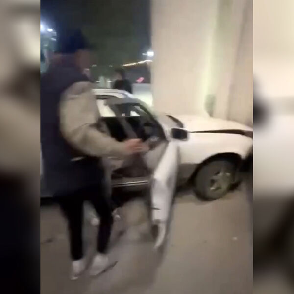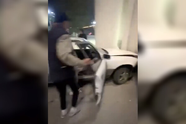 Очевидцы запечатлели инцидент на видео. На кадрах видно, как после ДТП подростки выходят из автомобиля. Один из нарушителей падает на асфальт, остальные — пытаются силой передвинуть поврежденную машину.