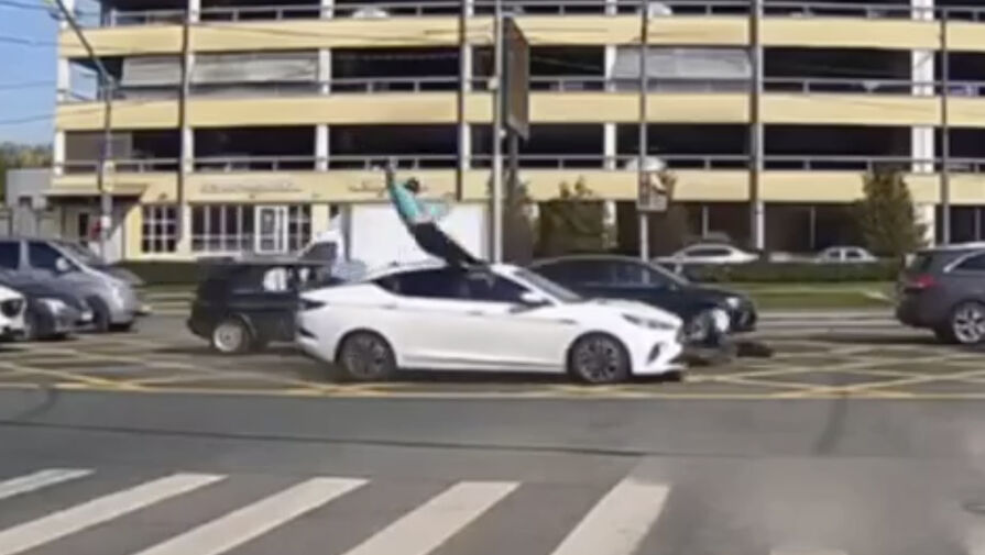 На видео попало, как в Москве курьер взлетел в воздух после наезда автомобиля
