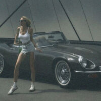 На опубликованной в сети фотографии видно, что комикесса стоит в белой майке и короткой джинсовой юбке на фоне ретроавтомобиля Jaguar E-Type.