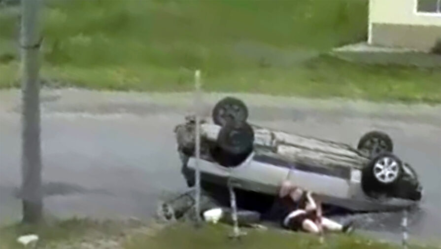 Уличная камера запечатлела инцидент. На кадрах видно, как автомобиль врезается в столб и переворачивается на крышу. После произошедшего водитель выбирается из поврежденной машины и уходит.