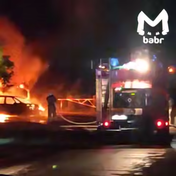 Как уточняется в посте, оба водителя выжили, но транспортные средства сгорели полностью.