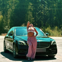 На опубликованных в сети кадрах видно, что исполнительница стоит в розовом топе и длинный штанах возле автомобиля Mercedes.