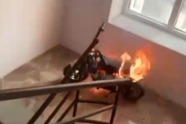 В Ростове электровелосипед загорелся на лестнице дома и это попало на видео