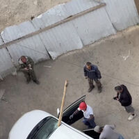 На опубликованных в сети кадрах видно, как мужчины достают доску, пробившую лобовое стекло припаркованной машины.