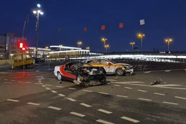 «Chevrolet Camaro и такси столкнулись ночью на Котельнической набережной в центре Москвы. Оба автомобиля получили сильные повреждения, но водители серьезно не пострадали», — говорится в сообщении.