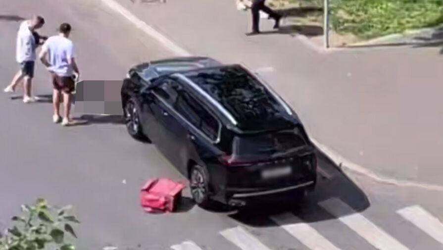 В Москве китайский автомобиль сбил курьера. Видео опубликовал Telegram-канал «Что там, Москва?».