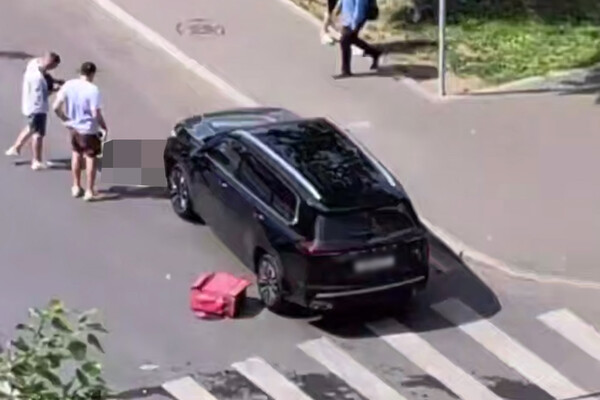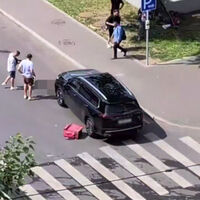 На размещенных кадрах видно, что тело курьера остается лежать прямо перед автомобилем. Рядом лежат его двухколесный электротранспорт и рюкзак.