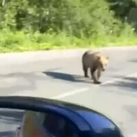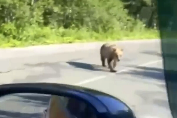 Очевидица запечатлела инцидент на видео. На кадрах видно, как медведь ходит по проезжей части. При этом, когда машина останавливается, животное подходит и заглядывает в транспорт.