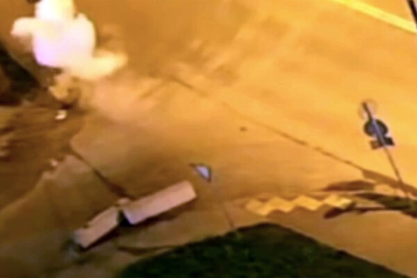 Уличная камера запечатлела инцидент. На кадрах видно, как из проезжающего автомобиля люди выбрасывают предмет, который после взрывается.