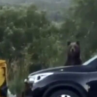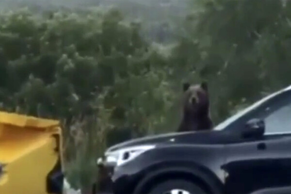 В Башкирии на видео попало, как медведь играл с человеком, сидя за машиной