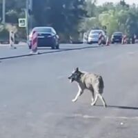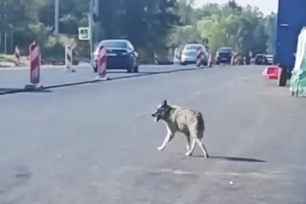 Очевидцы запечатлели инцидент на видео. На кадрах видно, как два волка бегают по проезжей части в необорудованном для пешеходов месте.