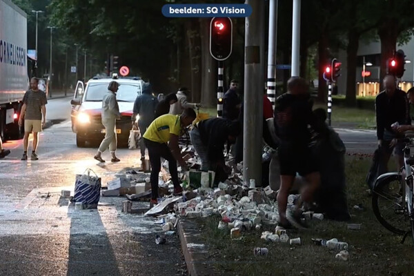 Нидерландцы расхватали йогурты, выпавшие из фуры на светофоре