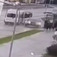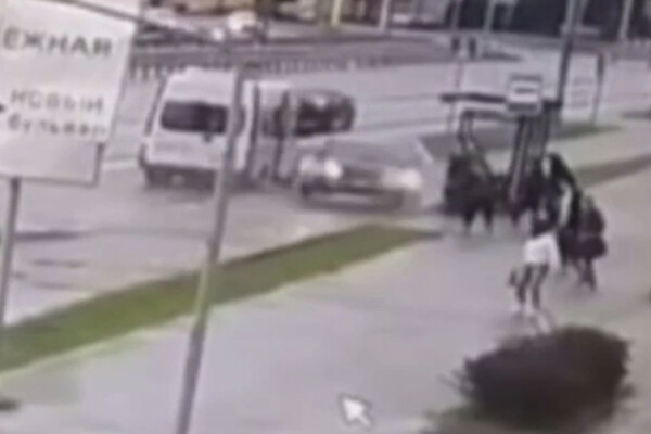 Уличная камера запечатлела инцидент. На кадрах видно, как черный автомобиль едет на большой скорости и боком врезается в остановку, на которой стоят люди. От удара машина подлетает. На записи также заметно, как за несколько секунд до столкновения прохожие успевают отбежать.