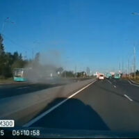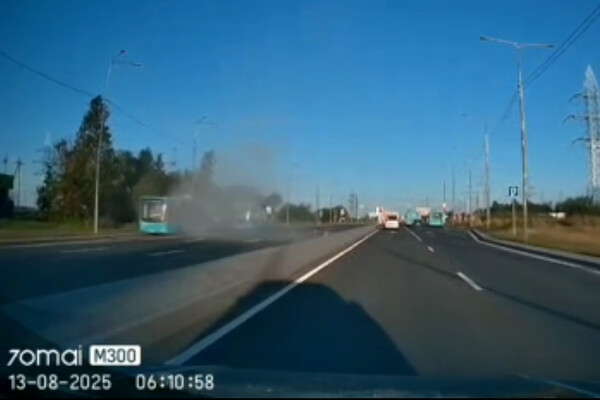 На видео попало, как «лазурный» автобус заволокло дымом в Петербурге